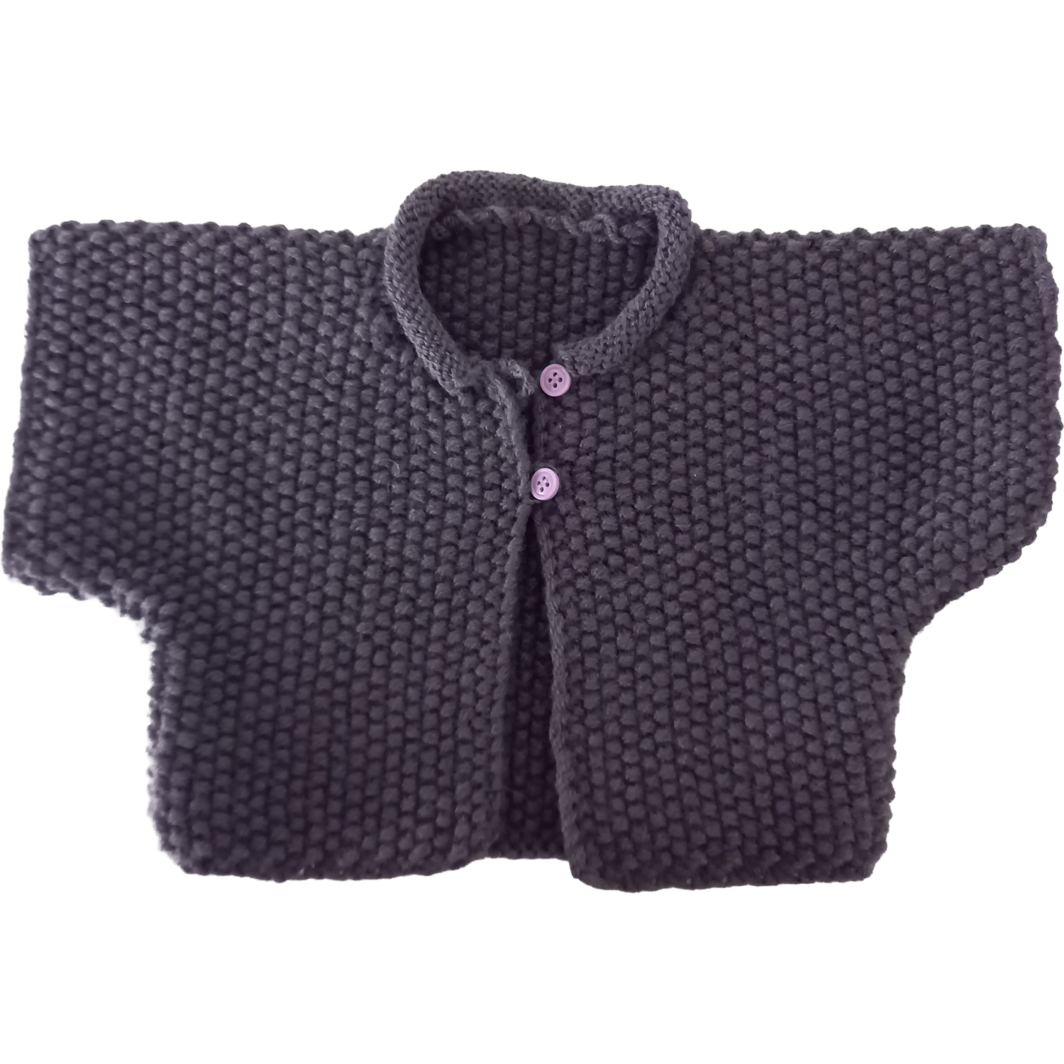Cardigan manches courtes tricoté en fil composé à 20% de laine.