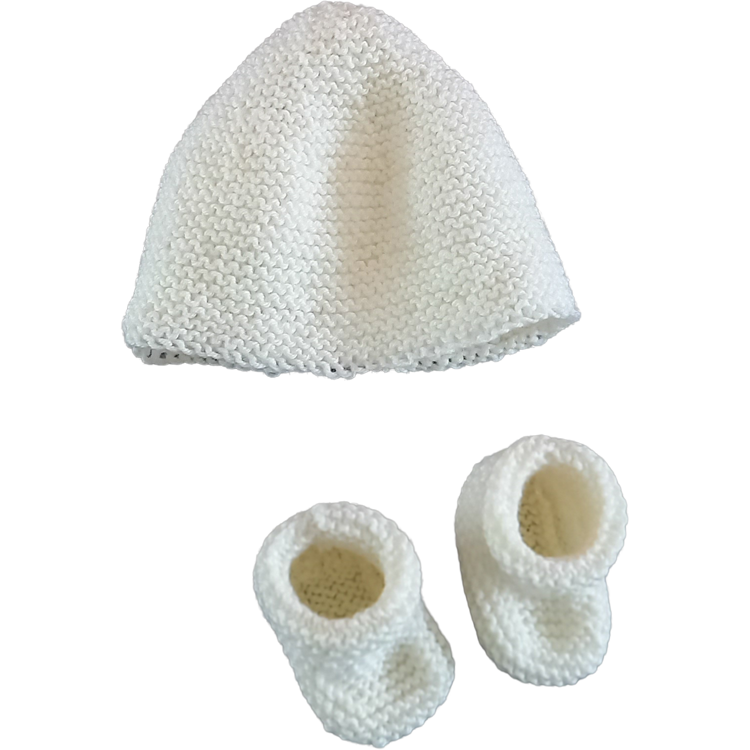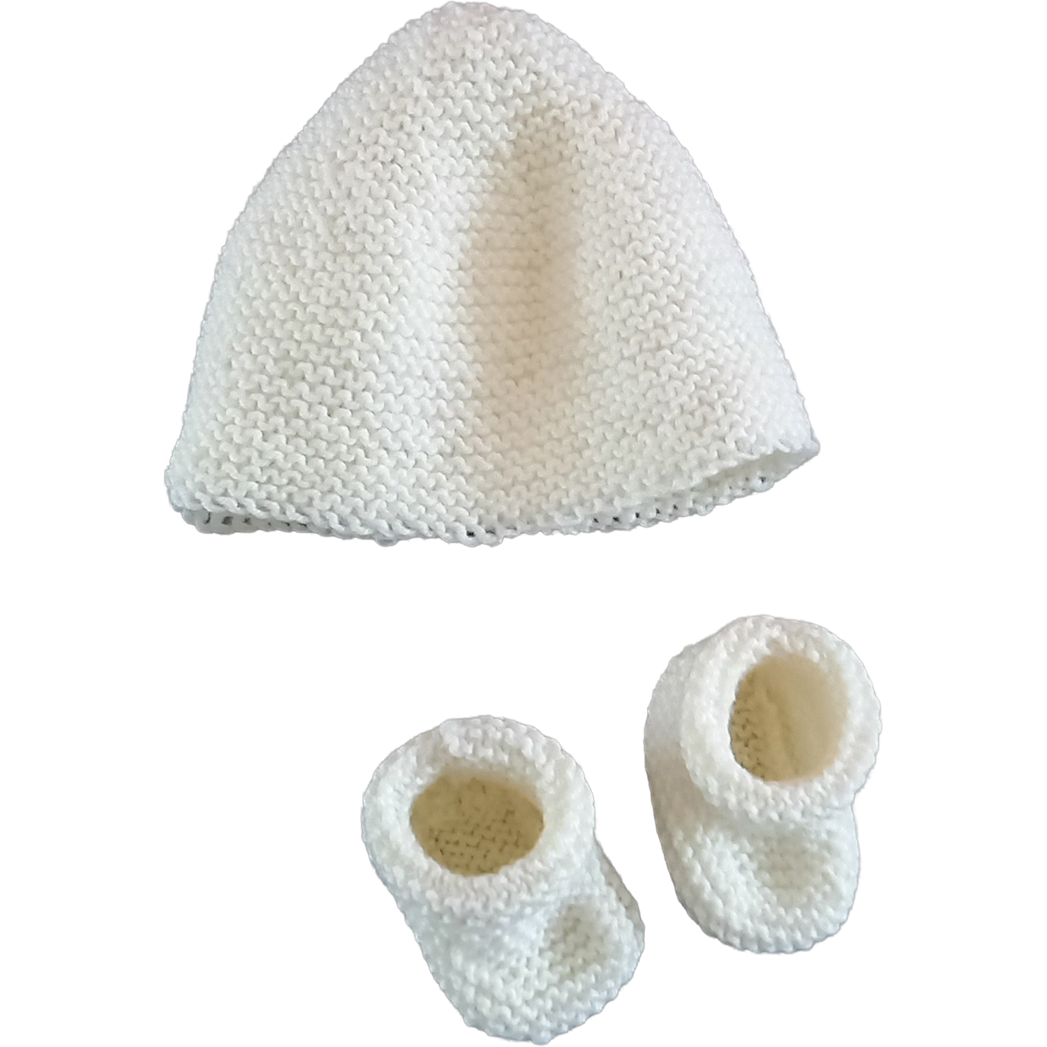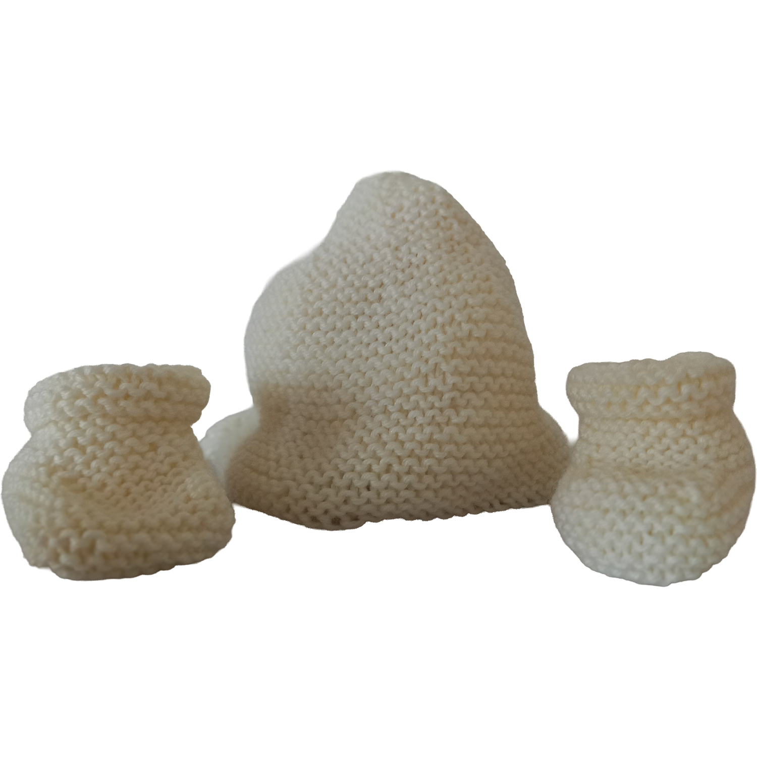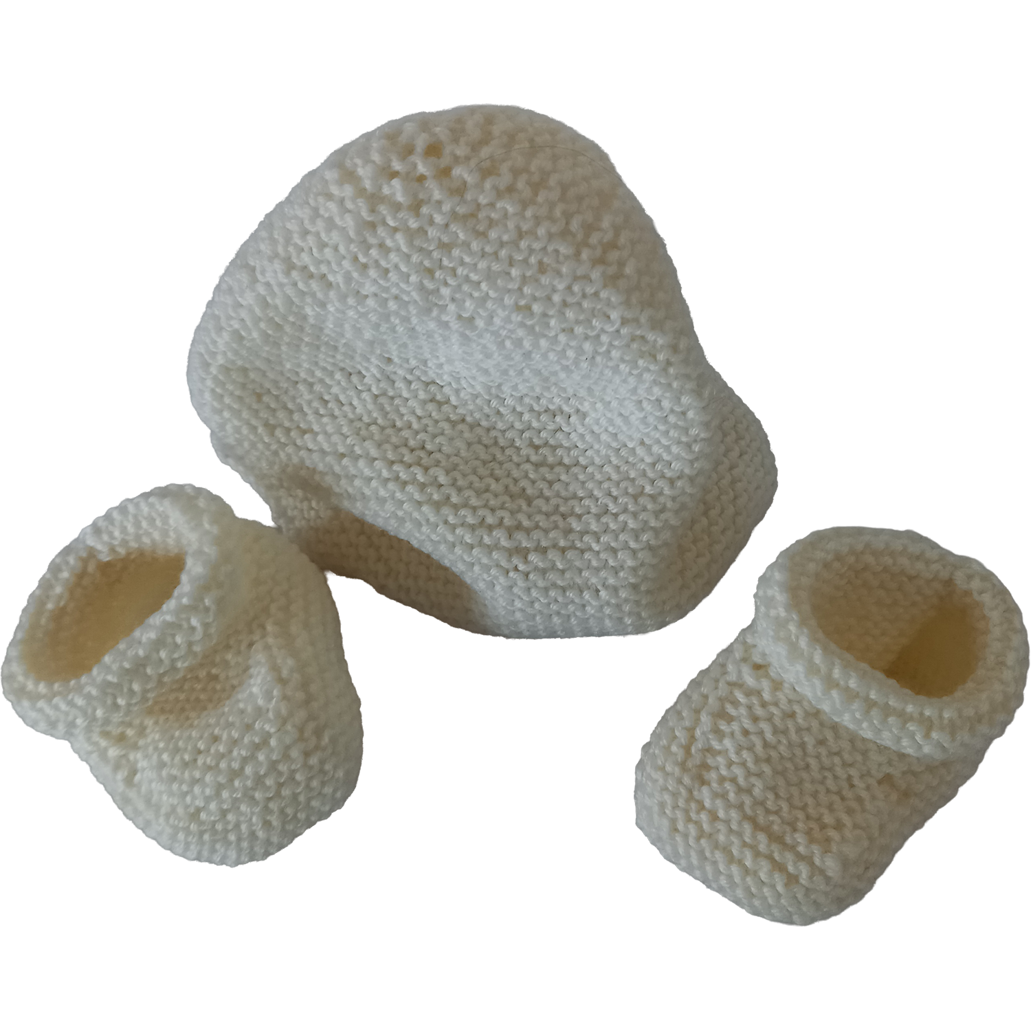 Ensemble bonnet & chaussons tricoté en fil composé à 40% de laine