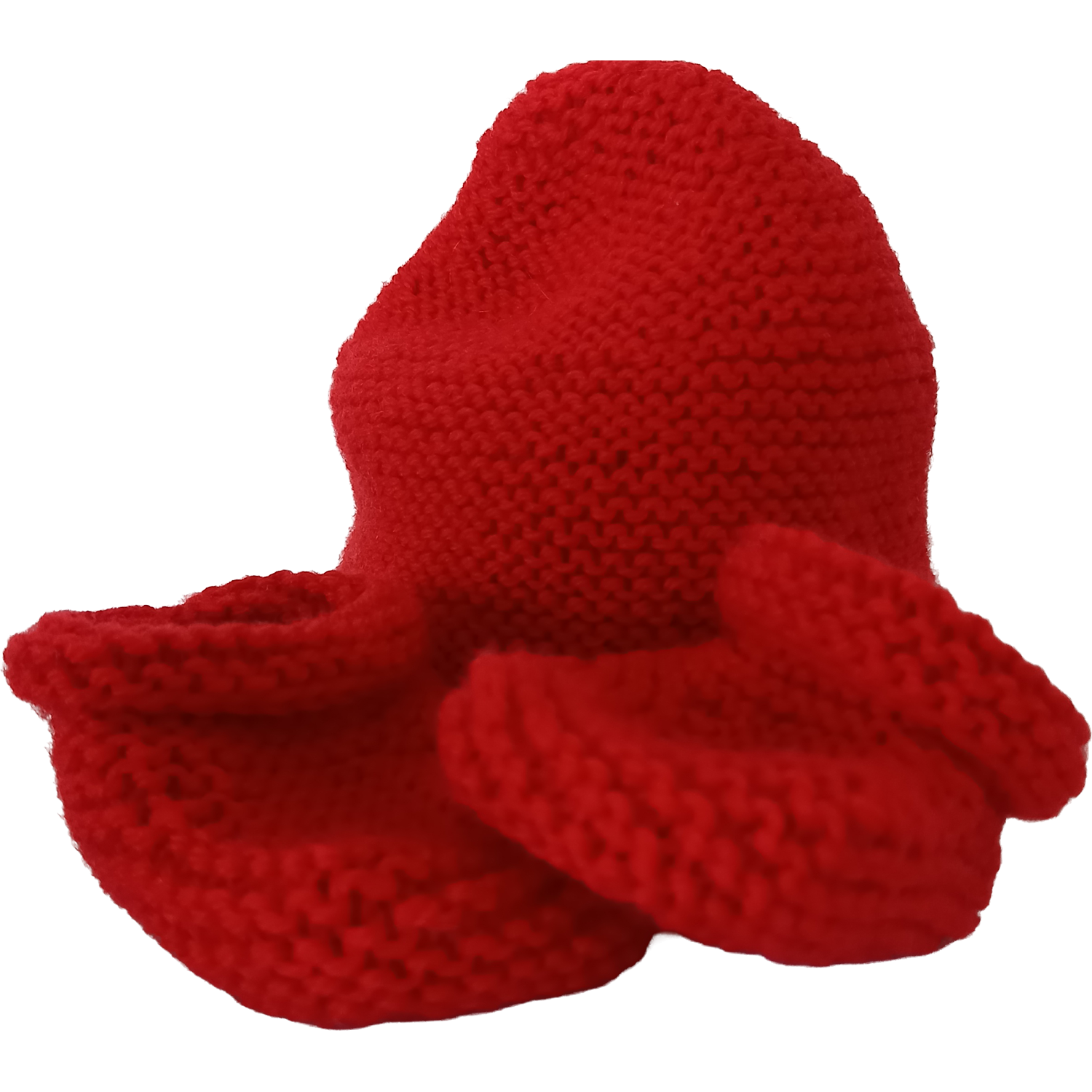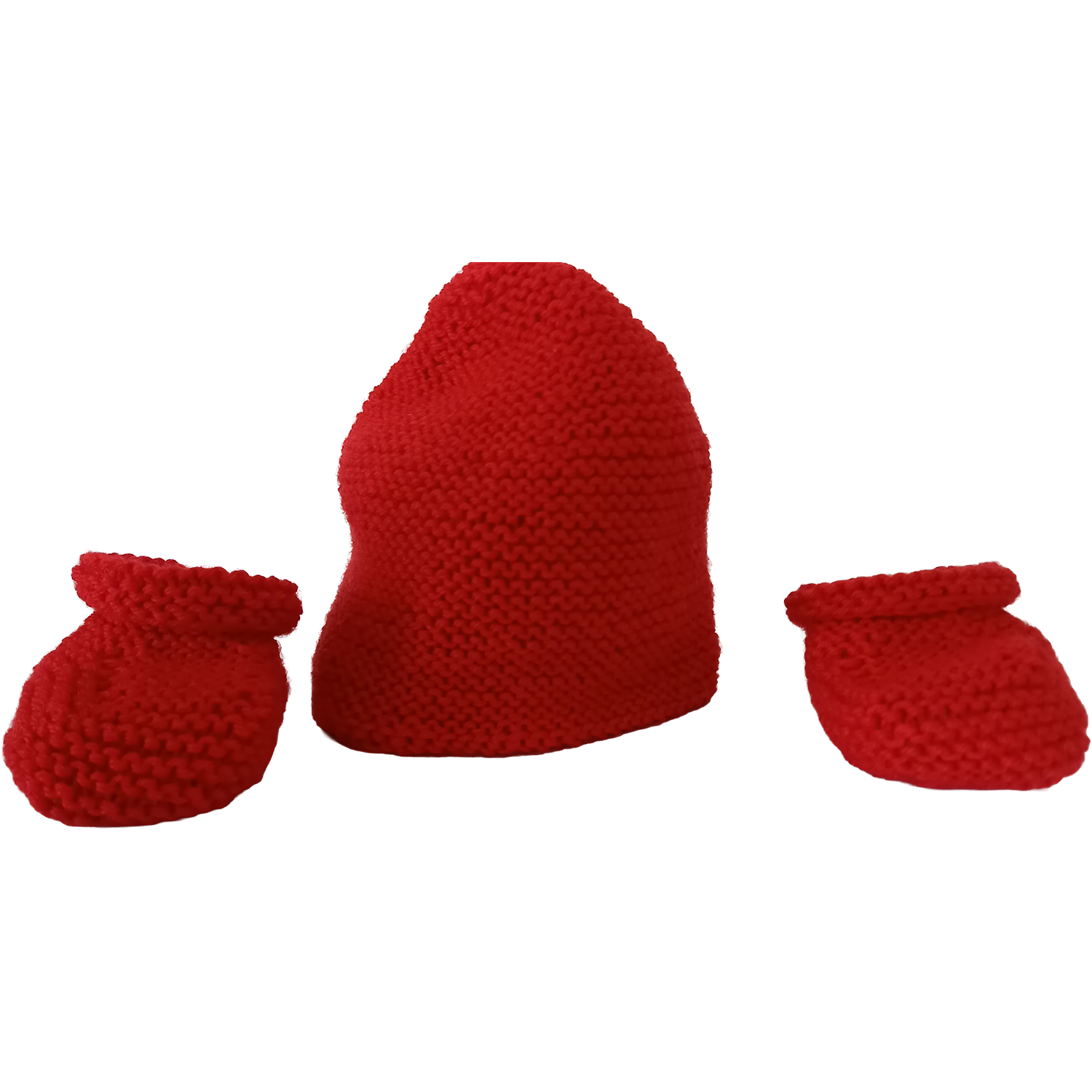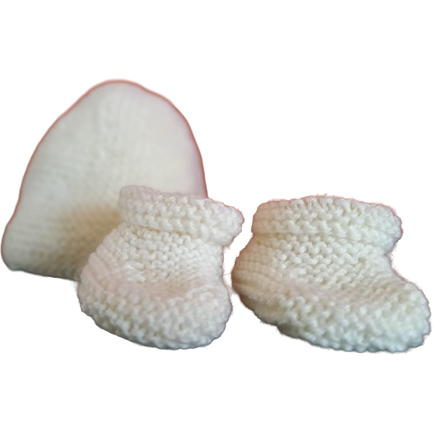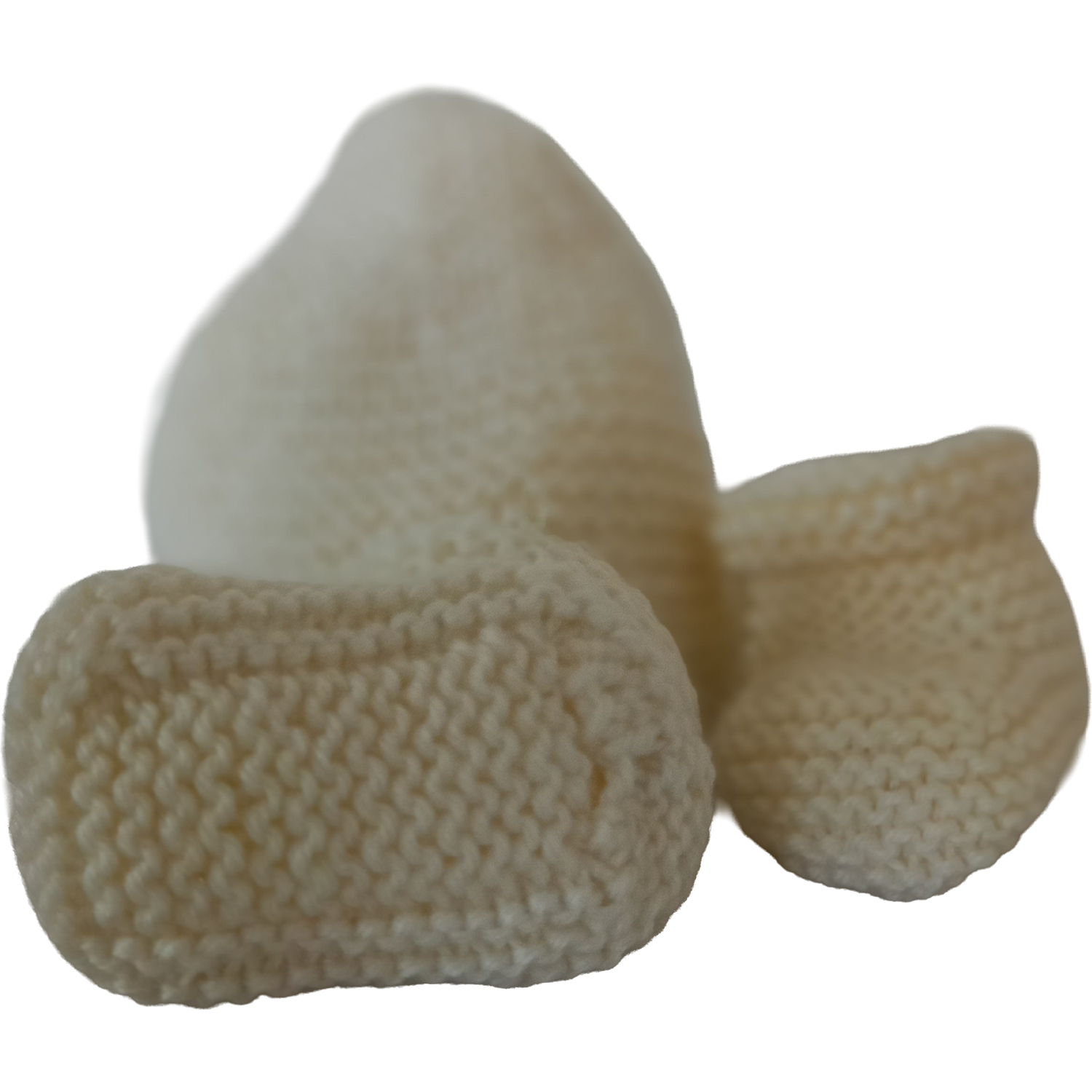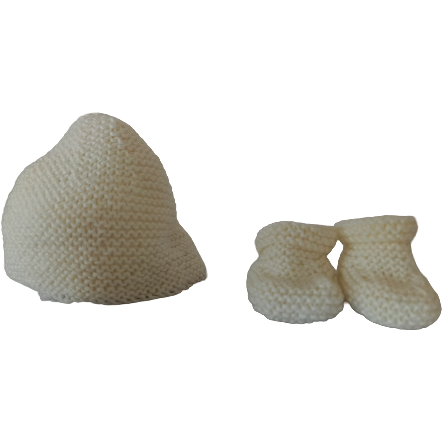 Ensemble bonnet & chaussons tricoté en fil composé à 40% de laine