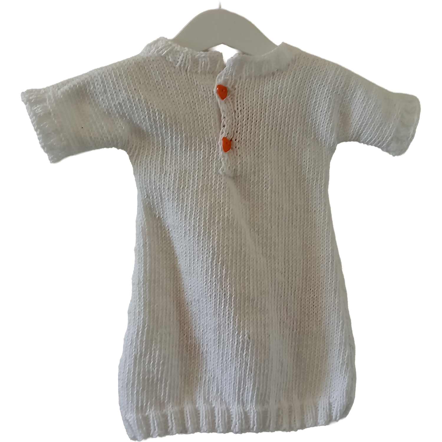 Robe à manches courtes fermée par 2 boutons dans le dos. Elle est tricotée dans un fil composé de 100% de coton mercerisé. Ce fil peut être lavé en machine à 30°, sécher en sèche linge à température modérée. Repassage et nettoyage à sec autorisé.